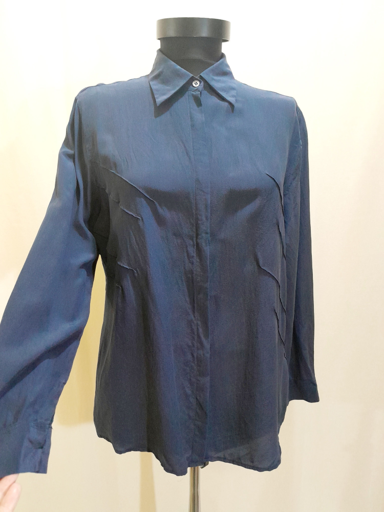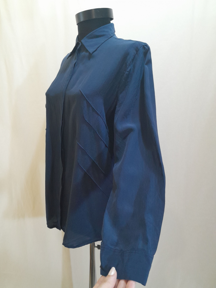 Cămașă vintage din mătase naturală cu croi lejer , are pliuri decorative in față , in stare impecabilă, potrivită pentru mărimea M .
