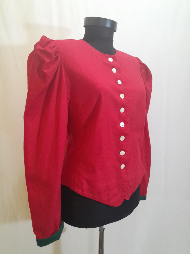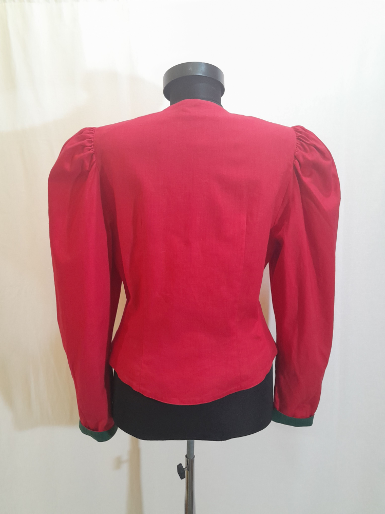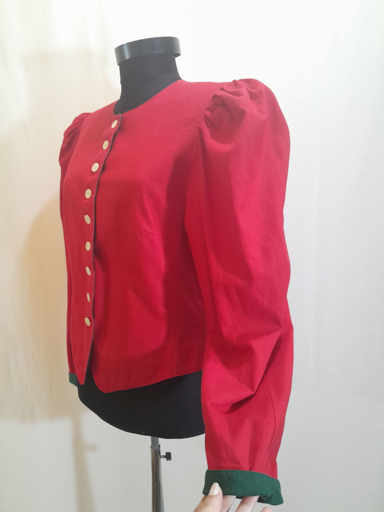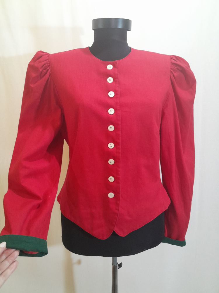 Sacou vintage din amestec de in și bumbac , cu croi scurt cambrat pe corp, mâneci bufante, decolteu rotund, are căptușeală , in condiție excelenta , potrivit mărimii S / M mic .