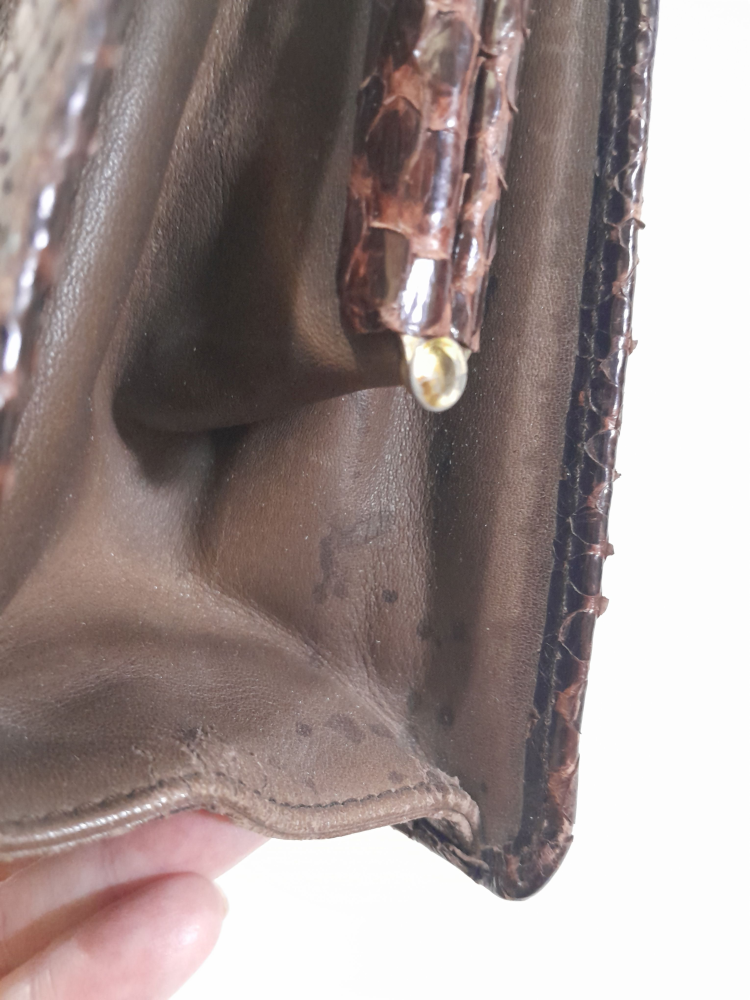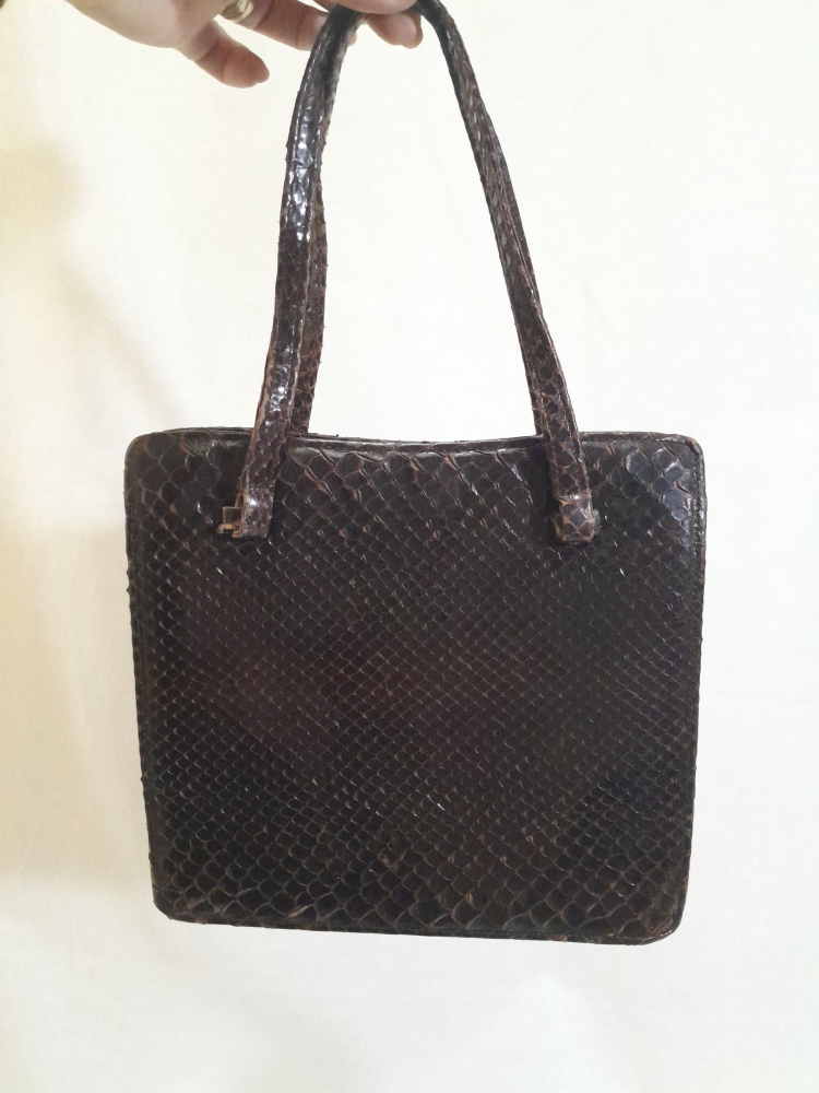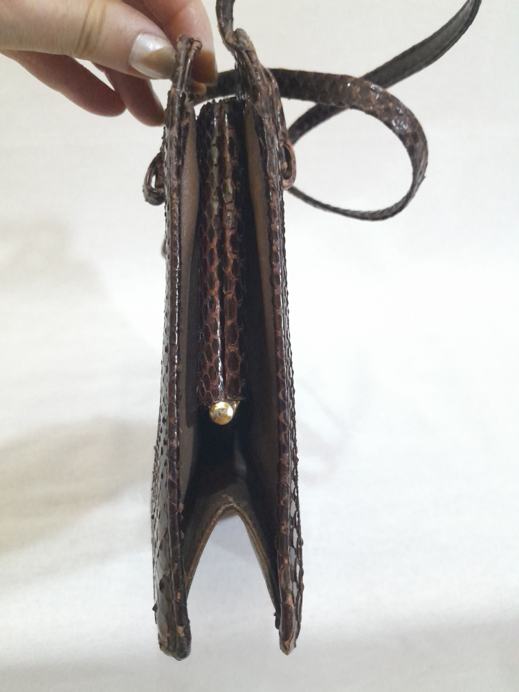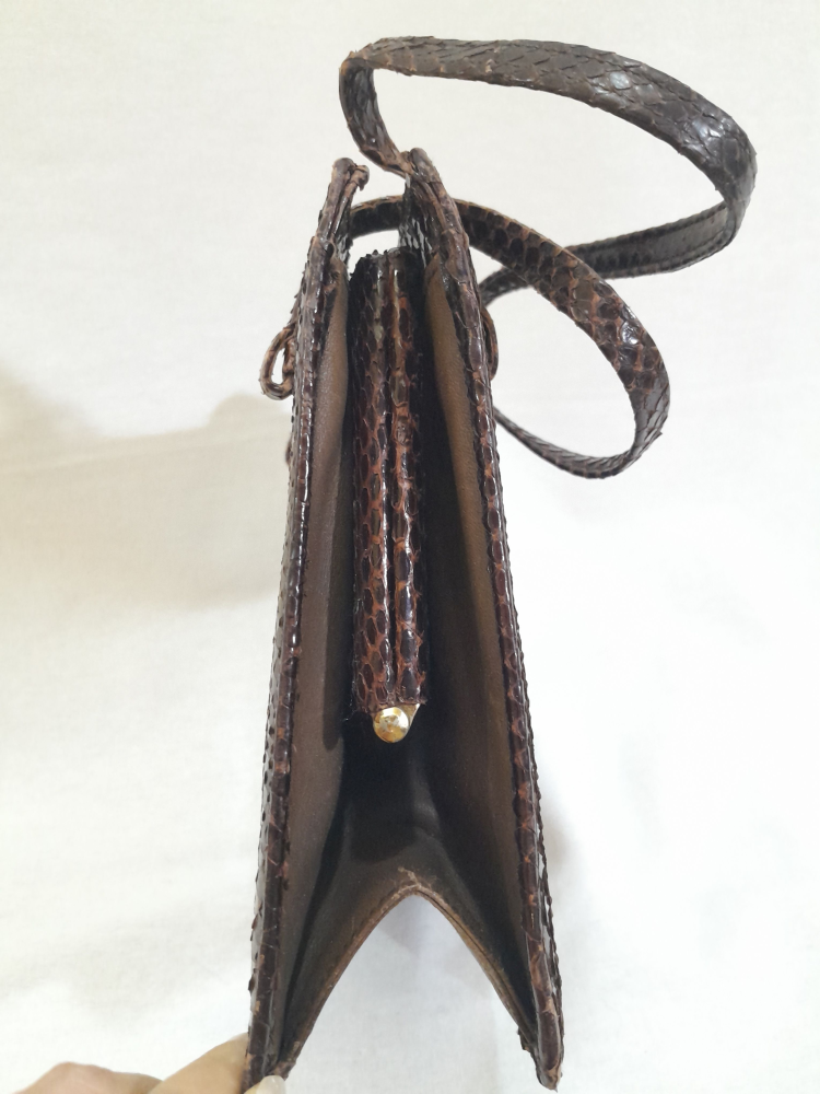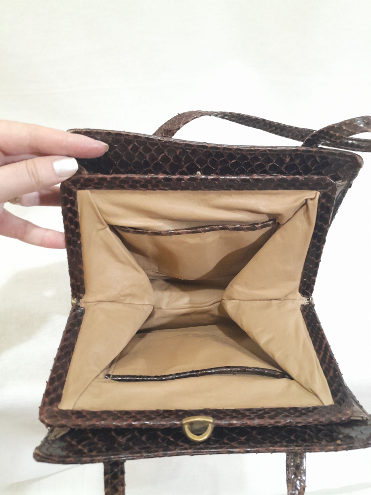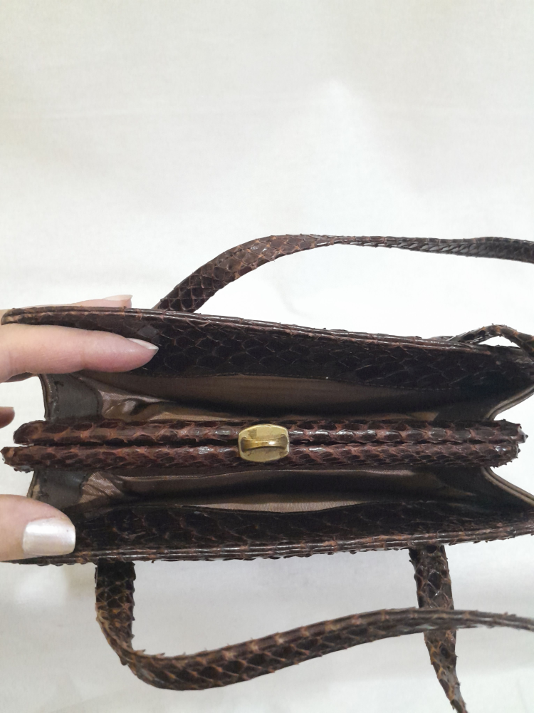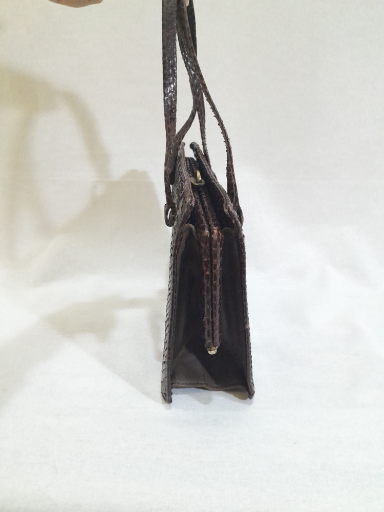 Poseta vintage anii 60 din piele exotică ( șarpe ) , maro inchis