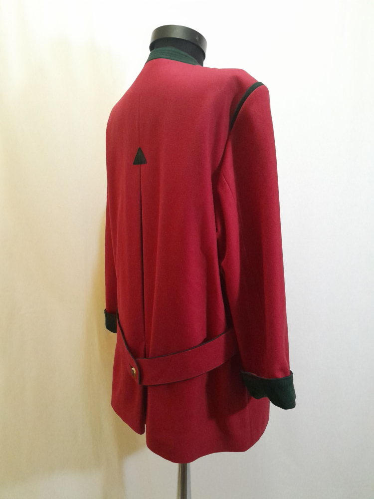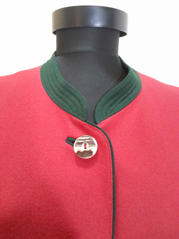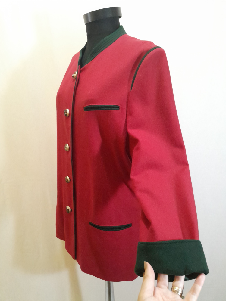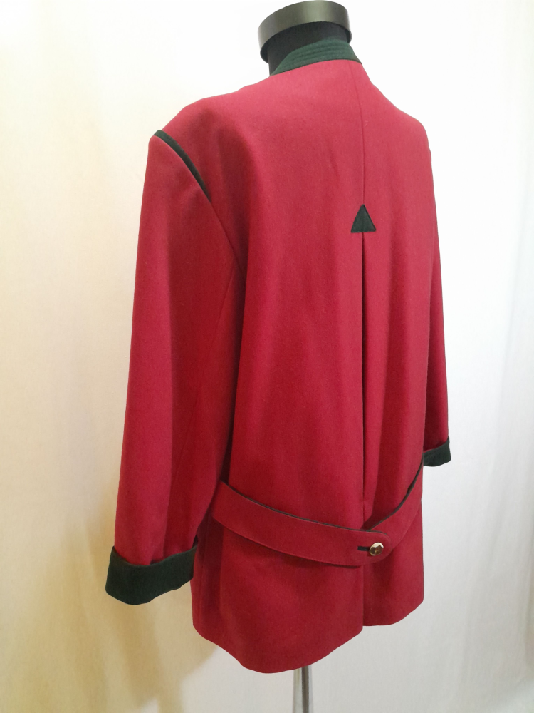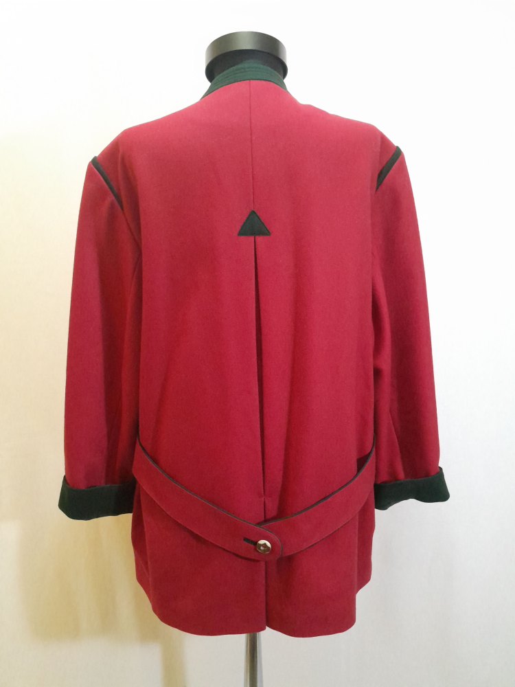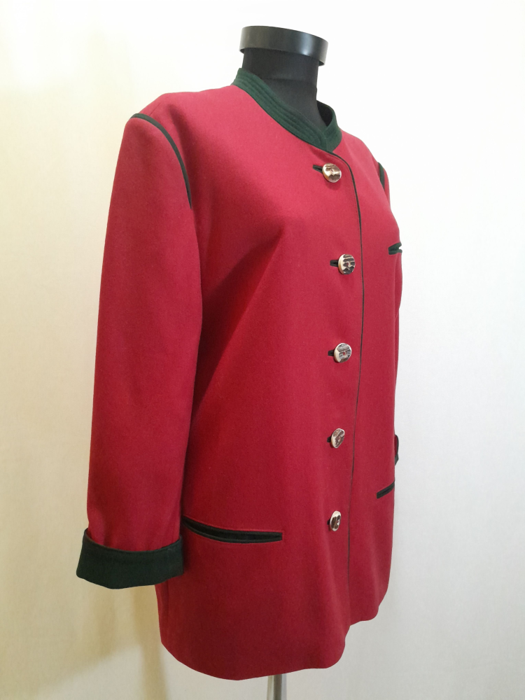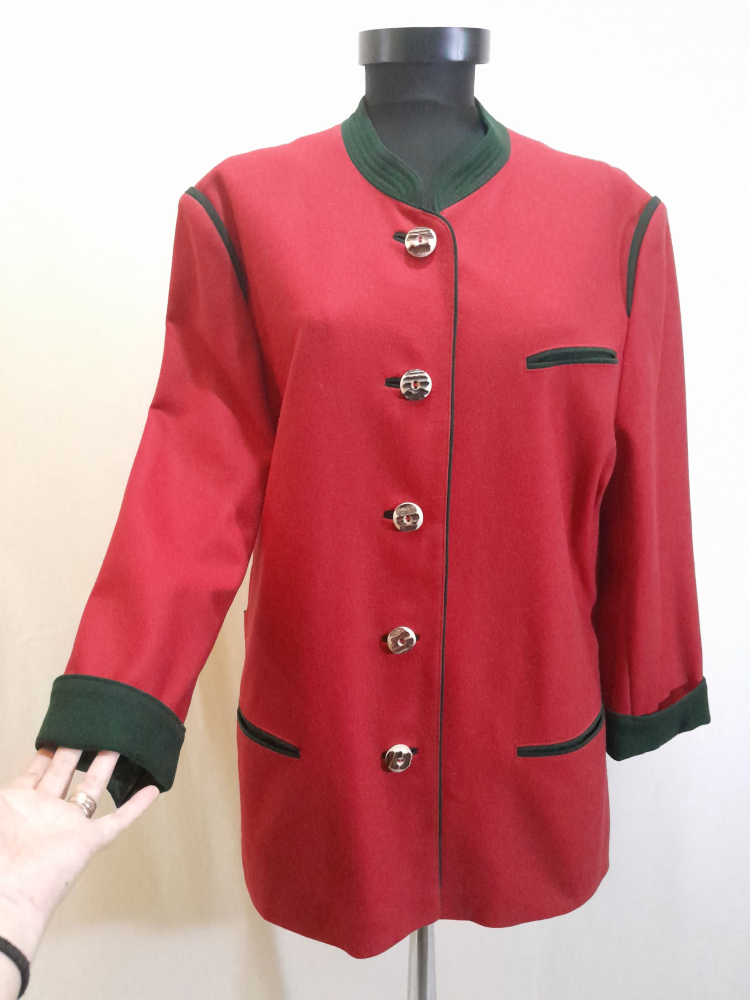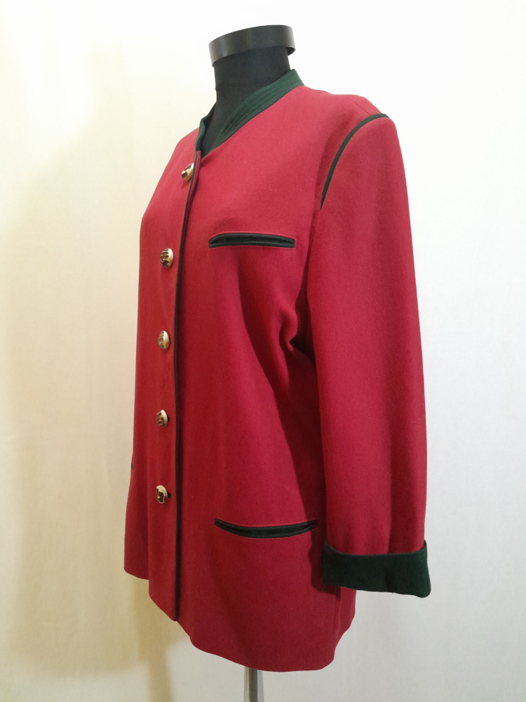 Sacou vintage rosu Lodenfrey din 70% lână , guler înalt tip tunică, are buzunare, este în condiție impecabila, marimea 40 pe eticheta .