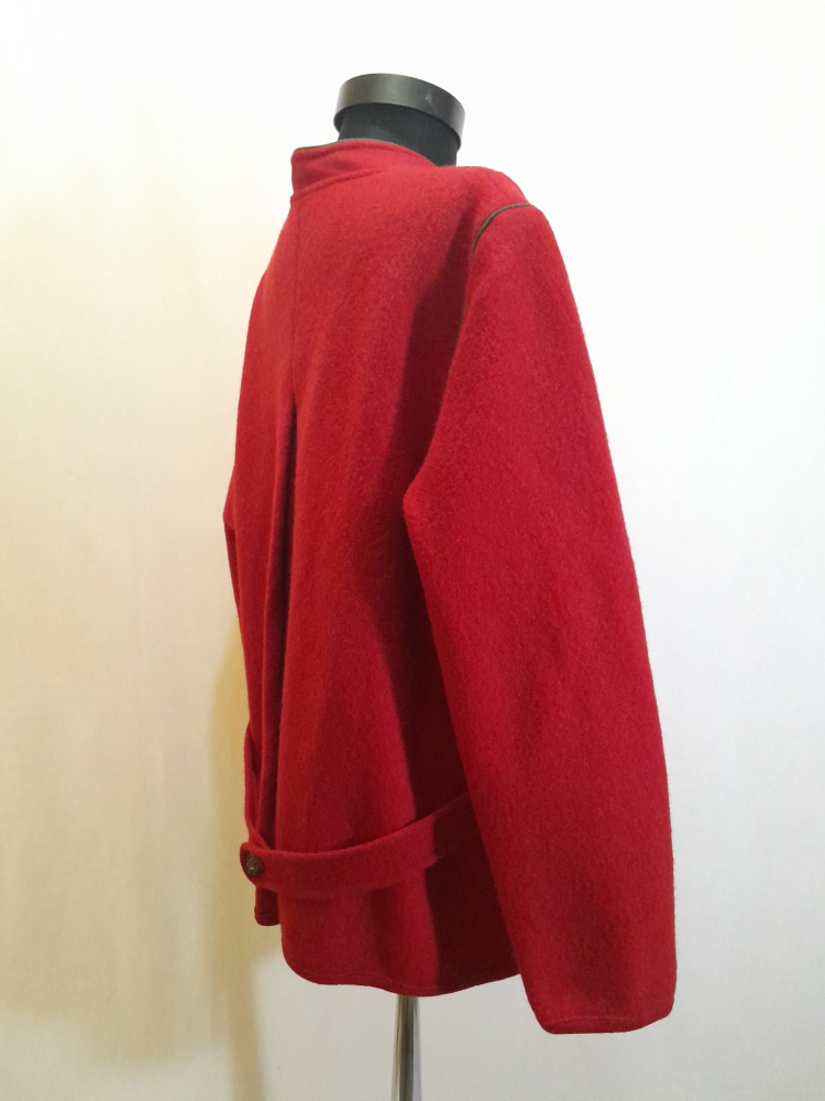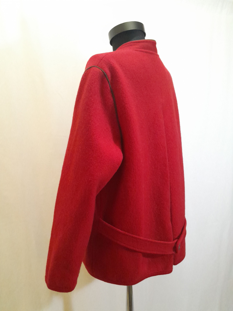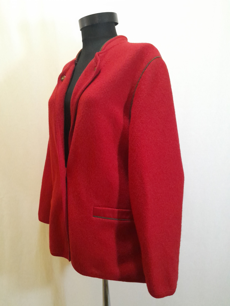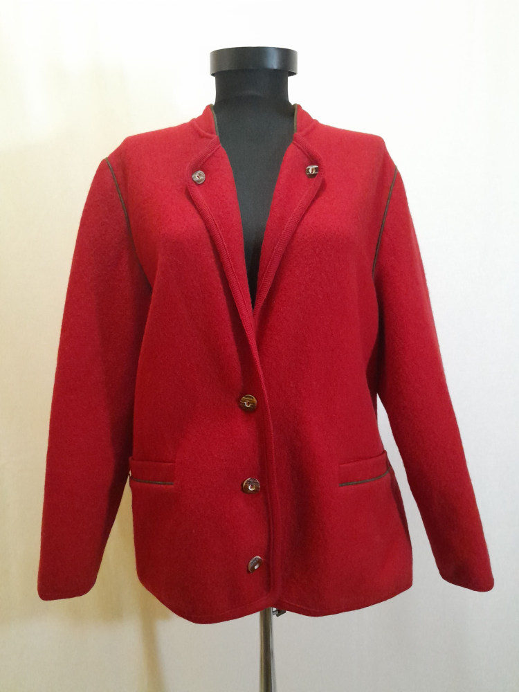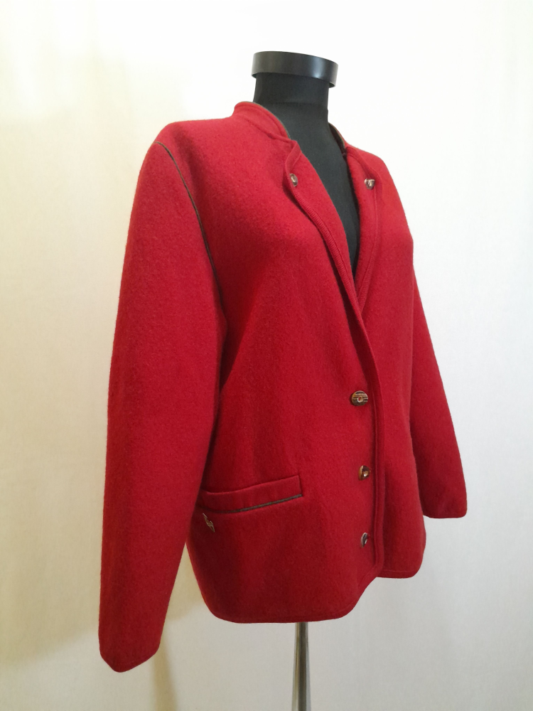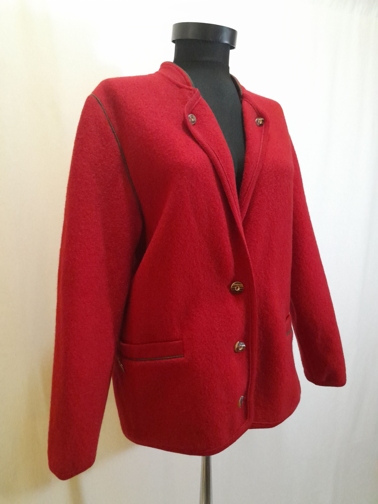 Jachetă vintage austriacă din lână fiartă este groasă, are buzunare , în spate prezintă un pliu și o bridă decorativă la nivelul taliei , foarte mică reparatie sub brațul stâng ( insesizabila la purtare , ultima foto) potrivită marimii L/XL.