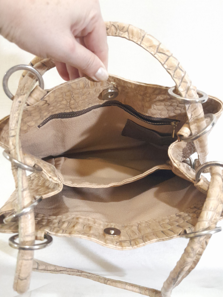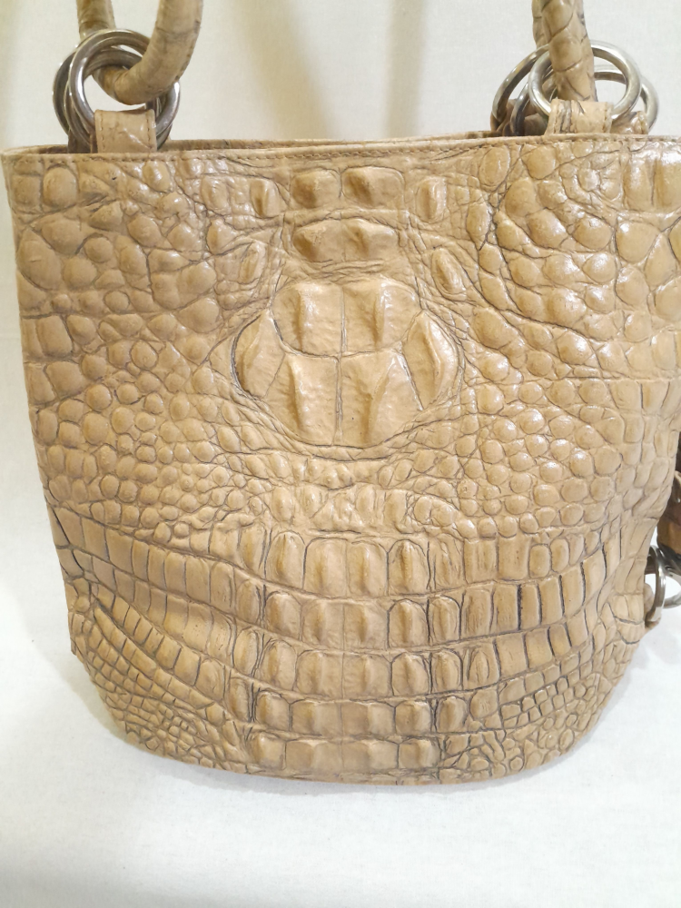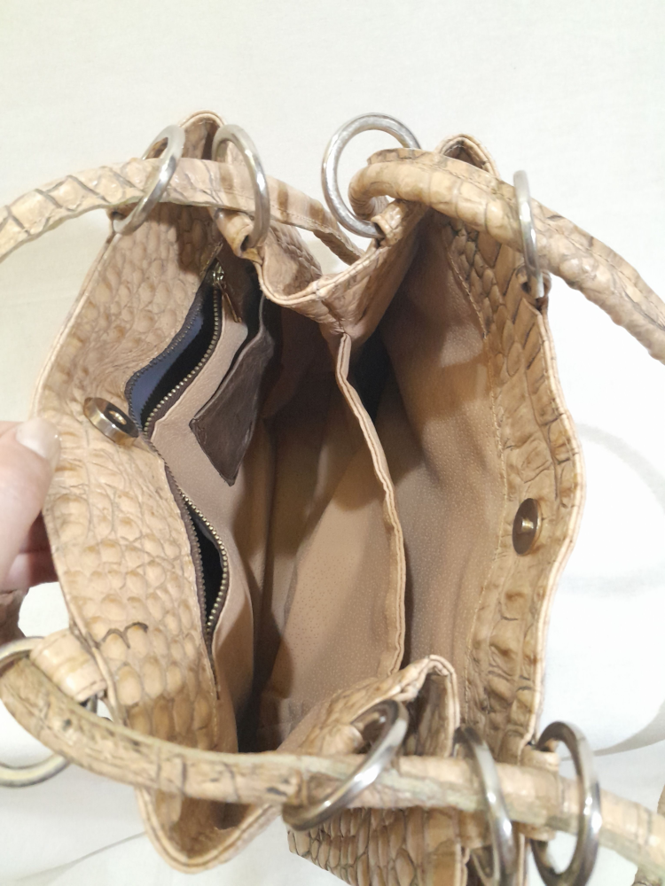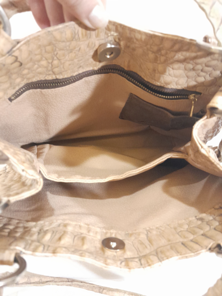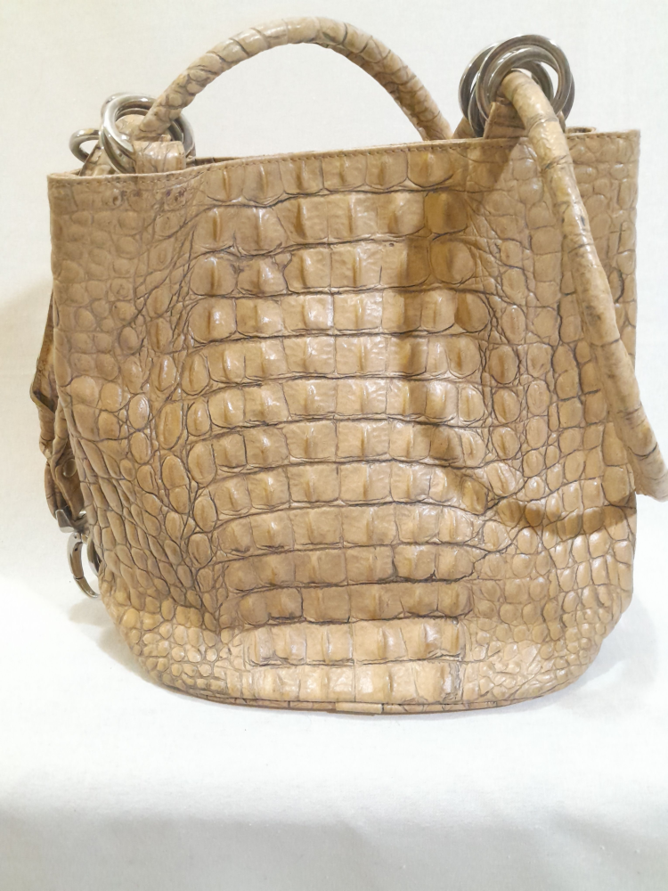 Geantă vintage din piele naturala exotică ( crocodil) , are două compartimente si doua buzunare interioare mai mici, in stare foarte buna de intretinere .