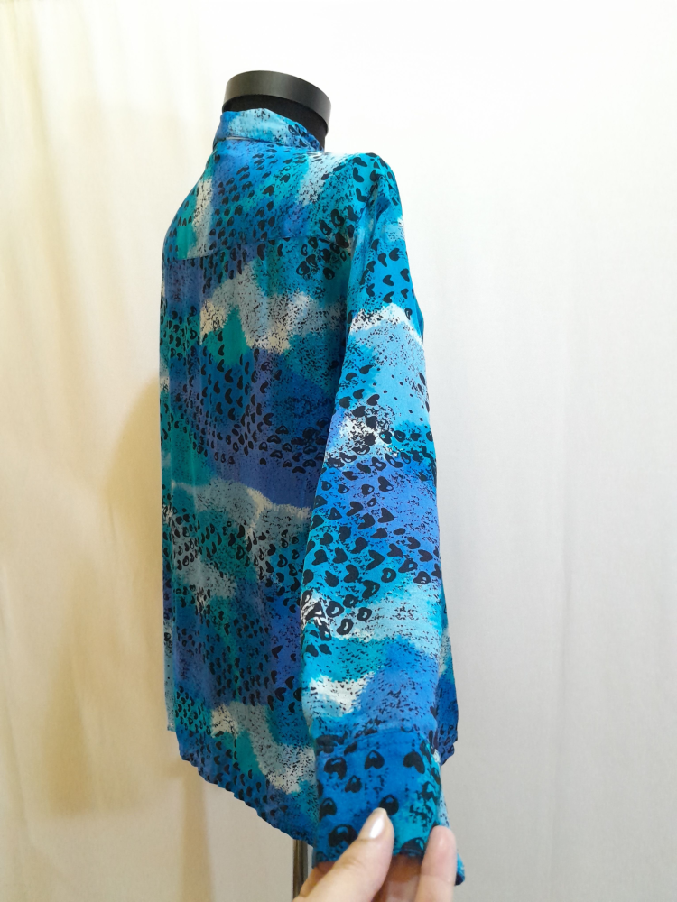 Cămașă vintage din matase naturala in nuante de albastru cobalt, turcoaz, bleu ciel si negru